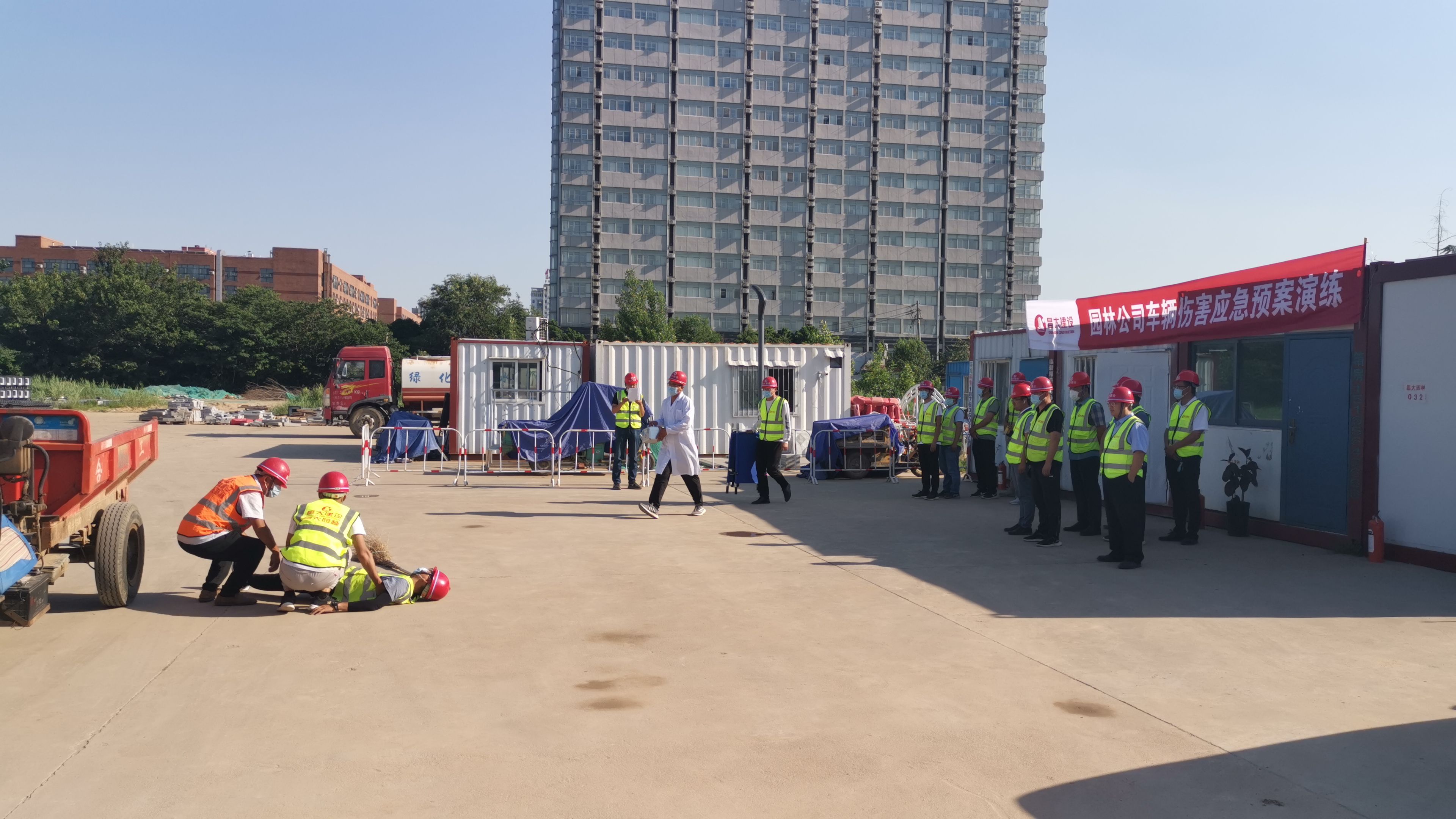 近年來(lái),昌大園林公司的道路景觀綠化項(xiàng)目較多,為確保員工及勞務(wù)用工的人身安全,公司工程部于2021年6月19日下午組織各項(xiàng)目負(fù)責(zé)人、安全員在健康街與高二路項(xiàng)目部進(jìn)行了一次車(chē)輛傷害應(yīng)急預(yù)案演練,通過(guò)演練提高了各項(xiàng)目管理人員的車(chē)輛傷害應(yīng)急處置能力,提高了安全意識(shí)。