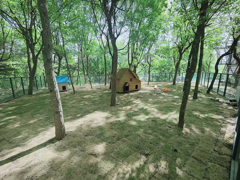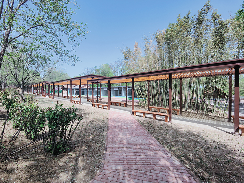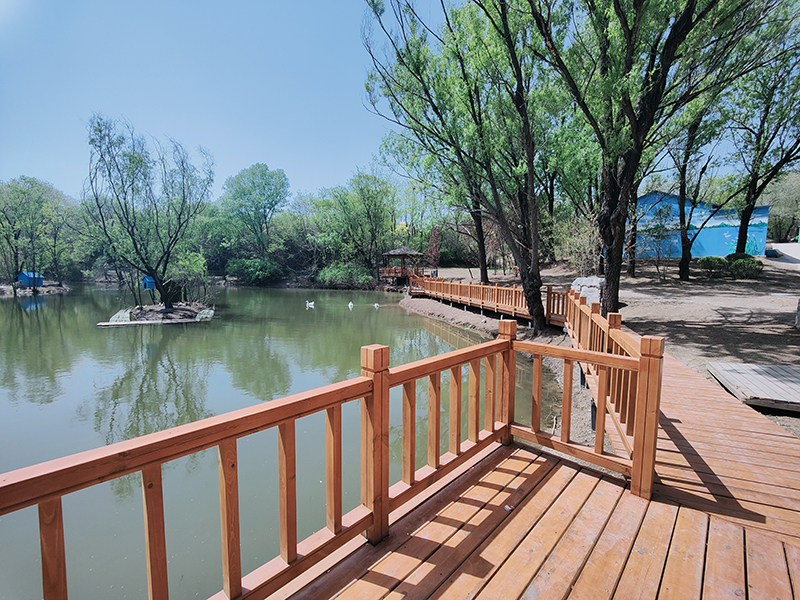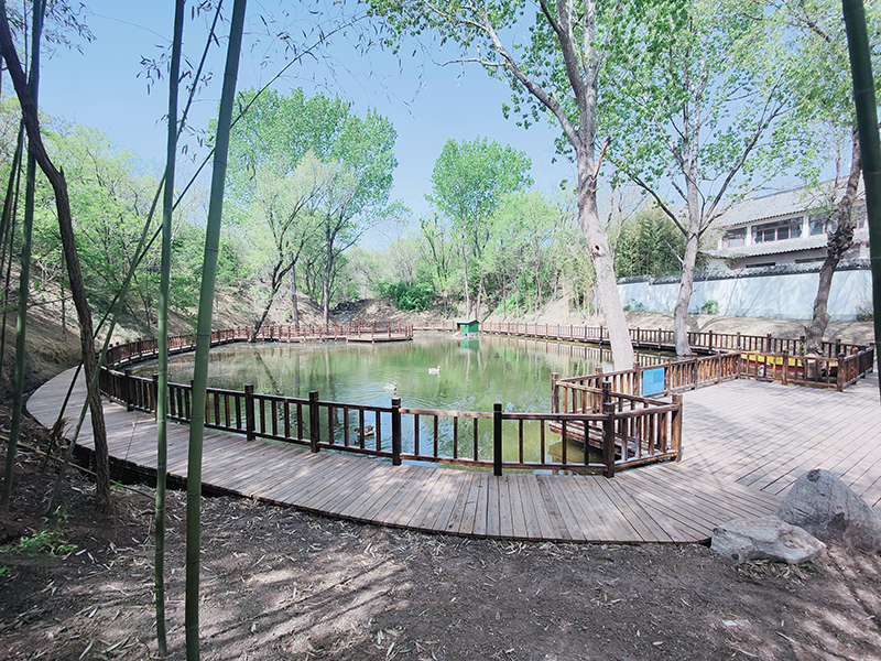 然而,建成后一個(gè)融入安丘青云山大園的這個(gè)動(dòng)物園在建設(shè)之初對(duì)于園林公司來說卻是難題頻現(xiàn)。其一,該項(xiàng)目開工前,既沒有同類的工程案例可供借鑒,也沒有類似工程的施工經(jīng)驗(yàn)。工程開工時(shí)新冠疫情肆虐,園林公司張本星項(xiàng)目管理團(tuán)隊(duì)?wèi){著科學(xué)嚴(yán)謹(jǐn)?shù)墓ぷ鲬B(tài)度,精益求精的工匠精神,遵循“策劃先行,樣板引路”的工作方針,在干中學(xué),在學(xué)中干,克服一個(gè)又一個(gè)困難,最終工程圓滿交付。之所以能夠做到這樣,主要取決于四個(gè)方面,一是昌大鐵軍的敬業(yè)精神,這是所有昌大人共同的精神財(cái)富;二是昌大人對(duì)于工程質(zhì)量和景觀效果的高站位認(rèn)知和高層次追求;三是園林人對(duì)于園林事業(yè)的追求以及那份執(zhí) 著的好鉆研的勁頭;四是他們對(duì)自己的完全自信。這四點(diǎn)匯成一起就贏得建設(shè)單位和社會(huì)的一致好評(píng)。正所謂:助人即助已,合作才能共贏。其二,如何讓新建景觀節(jié)點(diǎn)和原有景觀和諧統(tǒng)一,如何讓新建景觀節(jié)點(diǎn)為原有景觀加分增靚是這個(gè)工程的難點(diǎn),也是園林公司項(xiàng)目團(tuán)隊(duì)自始至終一直思考并最終解決的問題。本著人與自然和諧共生的理念,以園林人特有的專業(yè)視角,因地制宜,錯(cuò)落有致,移步易景,反復(fù)論證,形成設(shè)計(jì)方案;在施工過程中再不斷優(yōu)化完善,最終完美呈現(xiàn)在大眾面前。例如雁棲湖,原來是游覽路線邊一個(gè)三面山體圍成的垃圾場,經(jīng)過垃圾清理,排木成道,引水上山,疊石成瀑,環(huán)山成湖,湖上建亭,山上綠樹成蔭,水中大雁遨游,多么和諧宜人。再如松鼠林,就是在原有水杉樹林中建設(shè)松鼠館舍,游人漫步林中,觸手可及處,松鼠在上下歡跳,是小朋友們的最愛。
