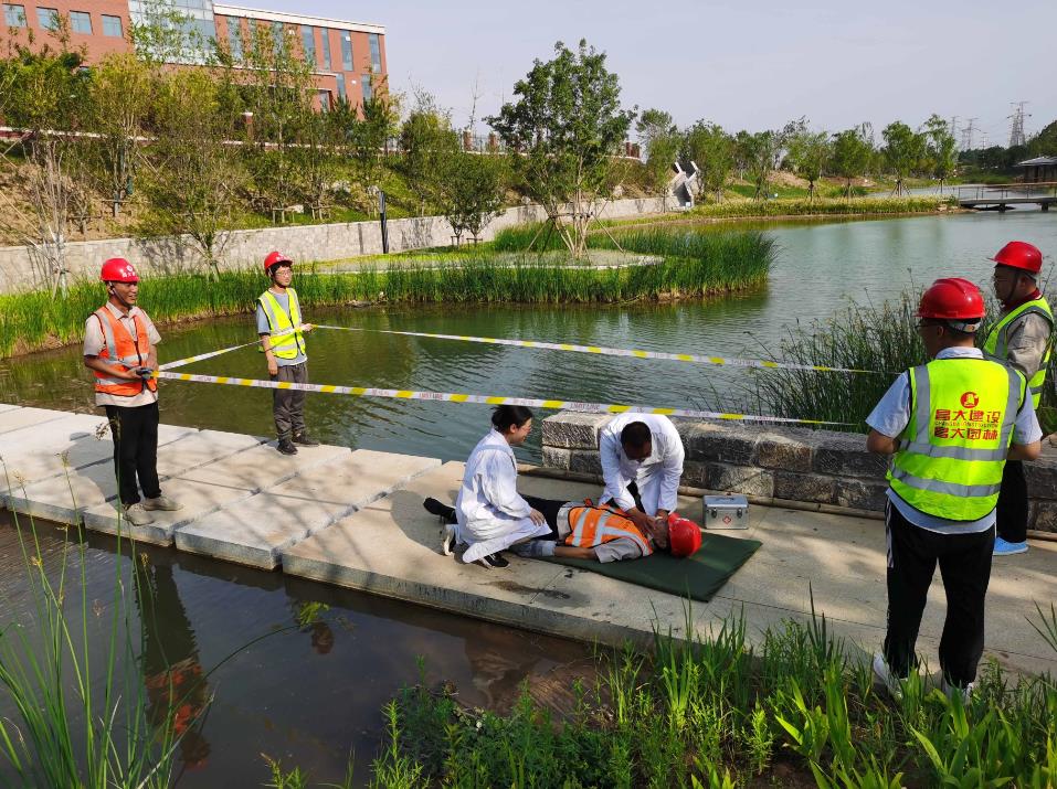 2023年6月7日下午,為提高全員應急技能水平,貫徹“人人講安全、個個會應急”的指導要求,園林公司在中頤龍湖康養(yǎng)小鎮(zhèn)美蘭河改造項目現(xiàn)場組織開展了防溺水應急救援演練。防溺水應急演練以項目現(xiàn)場人員意外落水為背景,重點把握預報預警、應急救援等關鍵環(huán)節(jié),集中演練了班組培訓、應急處置、人員搶救等場景。通過此次急救知識專題培訓及演練,提升了全體員工心肺復蘇知識和急救技能,為保障員工安全筑牢了一道生命防線。